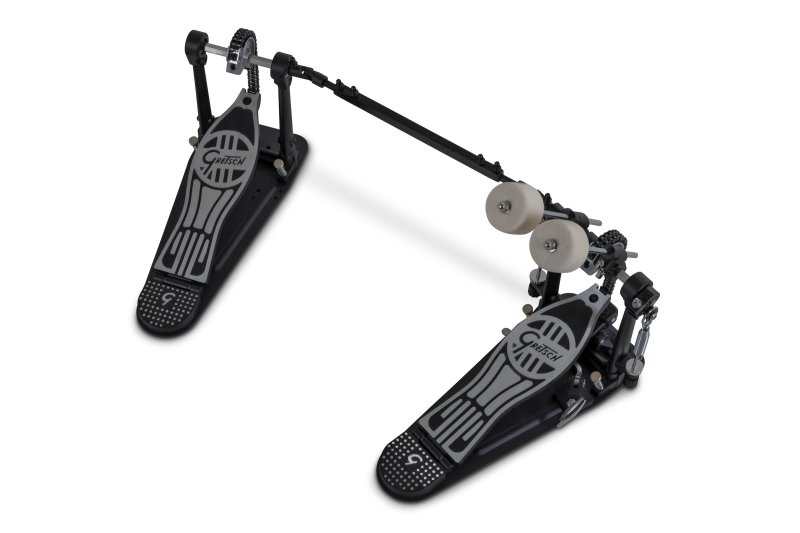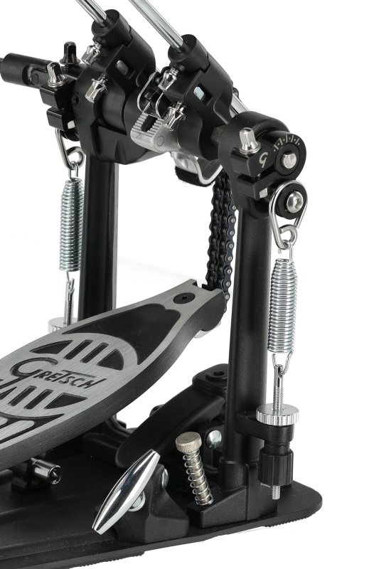 Equipped with robust double chain drives, it ensures optimal durability and smooth, respon-sive action. The Easy Glide GRETSCH footboards on both pedals enhance playability, allowing effortless footwork, while the hinged heelplate offers added comfort during long performances.