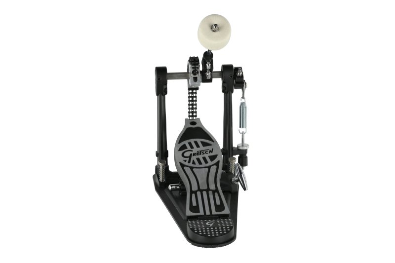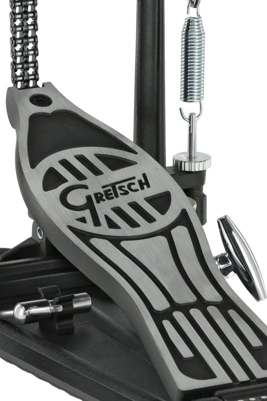 Featuring a robust double chain drive, it delivers optimal durability and a smooth, re-sponsive feel. The Easy Glide GRETSCH footboard enhances playability, allowing effortless footwork, while the hinged heelplate offers added comfort during long performances.