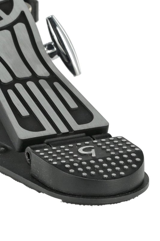 Its sturdy base-plate is designed with anti-slip rubber and adjustable spikes, ensuring a stable and secure setup on any surface. A convenient keyholder keeps your tools readily accessible. The pedal also features an easy-to-adjust 3-point hoop clamp, equipped with hoop-safe rubber bumpers on all clamps and a rub-ber hoop protector on the backside, safeguarding your bass drum hoop from damage.
