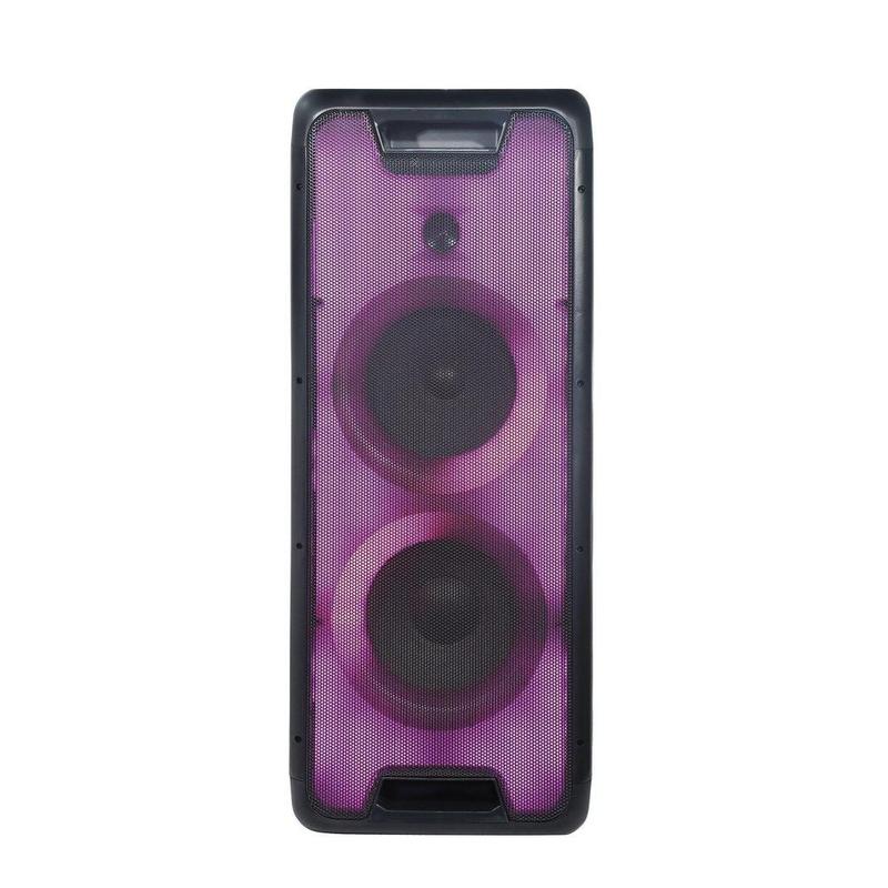 Portable Party System with dual 8” woofers and adjustable beat-synced party lights. Delivering 1000 Watts Peak Power with a built-in rechargeable battery and built-in Media Player allowing for playback via Bluetooth, FM Radio, and USB. The GLS-880 includes Mic & Guitar inputs with EQ Controls. Pairs to a 2nd GLS series speaker via TWS connection.