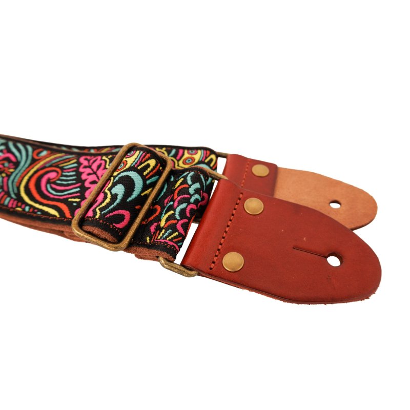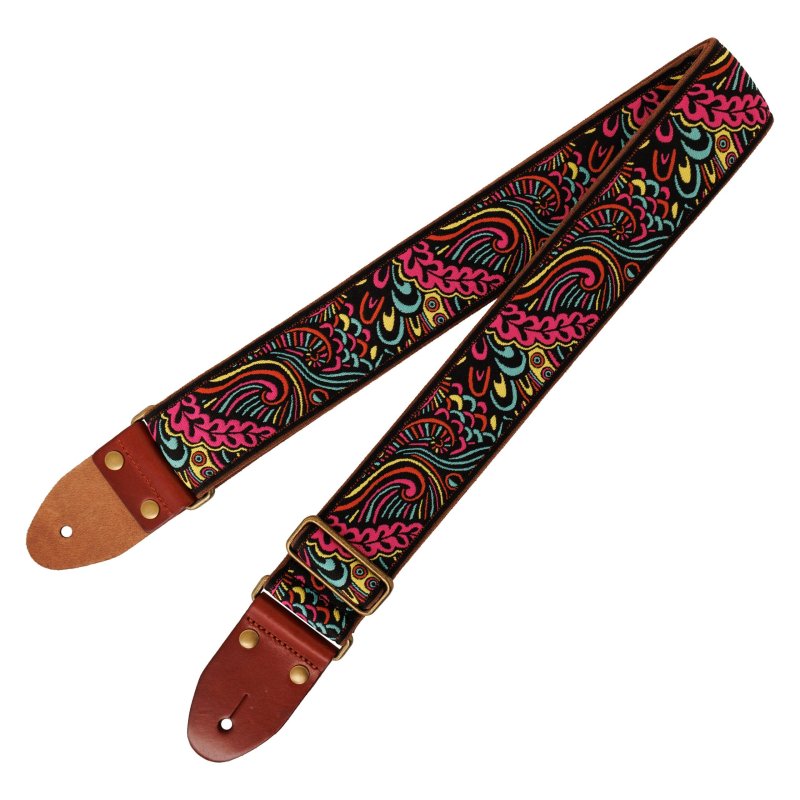 Add character, comfort, and craftsmanship to your instrument with this beautifully designed jacquard weave guitar strap, featuring a vibrant multicolor pattern woven with exceptional detail. The premium jacquard top showcases rich texture, crisp motifs, and a classic vintage inspired look—making it a standout accessory for acoustic, electric, and bass players alike.