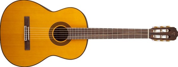 The GC5 is an elegant classical guitar that features deluxe cosmetic appointments, solid-top construction and a warm, resonant sound that will bring out the best in your music. An ideal choice for players looking for a refined and well-balanced classical guitar, the GC5 combines a fan-braced solid spruce top with rosewood back and sides to produce all of the rich, nylon-string tone players expect from a Takamine classical guitar. The comfortable mahogany neck and rosewood fingerboard provide great feel and playability, while the dovetail neck joint provides superior wood-to-wood contact for better resonance and excellent structural stability. |