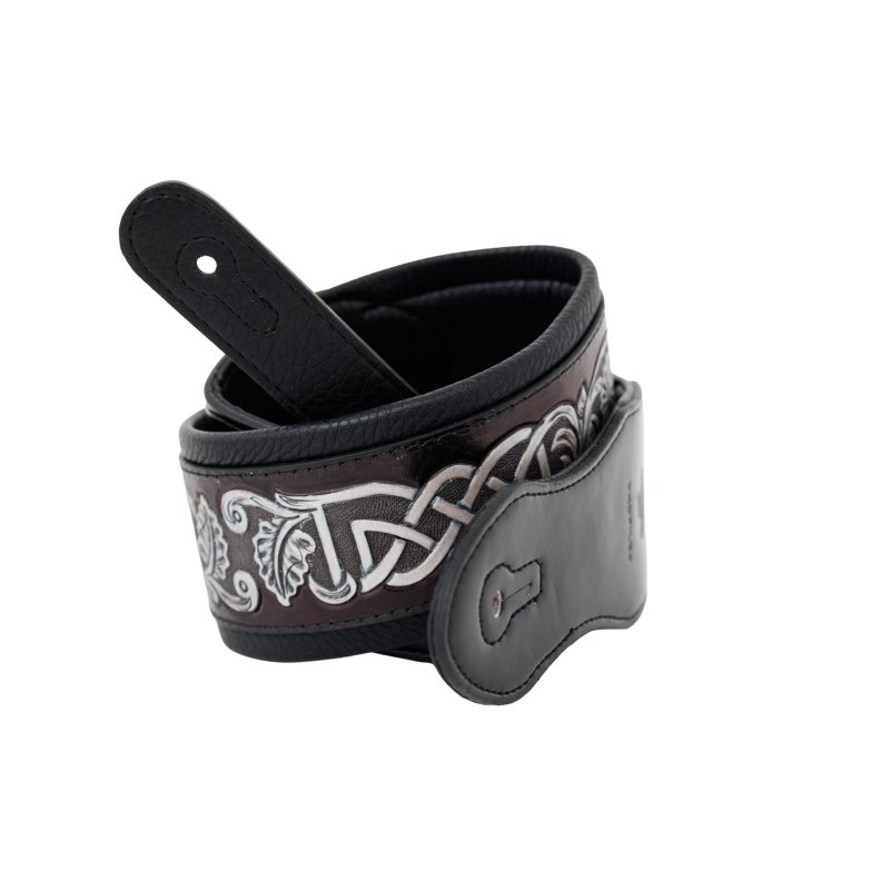 Elevate your instrument with a guitar strap that blends timeless craftsmanship and striking artistry. This Italian leather guitar strap features a rich dark brown and Black finish and a beautifully embossed Silver Celtic knot pattern, giving it a distinctive, heritage‑inspired character. Crafted from premium full‑grain leather, it offers exceptional durability, natural aging, and a luxurious feel that only high‑quality leather can provide.