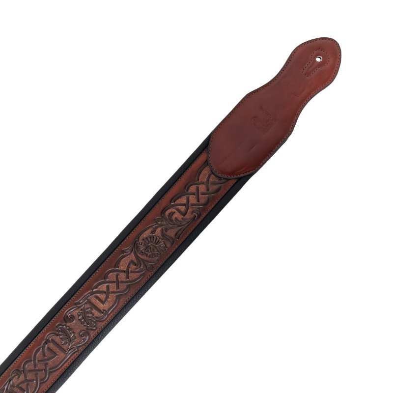 Elevate your instrument with a guitar strap that blends timeless craftsmanship and striking artistry. This Italian leather guitar strap features a rich dark brown finish and a beautifully embossed Celtic knot pattern, giving it a distinctive, heritage‑inspired character. Crafted from premium full‑grain leather, it offers exceptional durability, natural aging, and a luxurious feel that only high‑quality leather can provide.