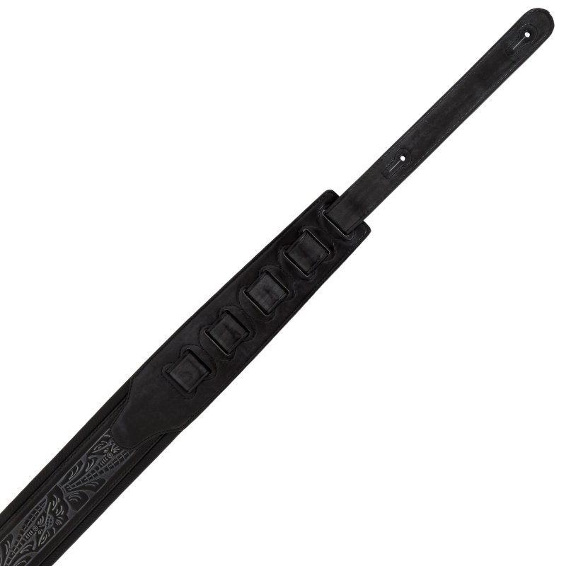 The strap features a smooth, padded underside that sits comfortably on the shoulder for extended playing sessions, while reinforced stitching ensures long‑lasting durability. The multiple length‑adjustment slots allow you to easily tailor the fit to your playing style, whether you prefer a low-slung stage look or a more traditional height. Finished with strong, secure end tabs, it offers reliable stability and confidence during every performance.