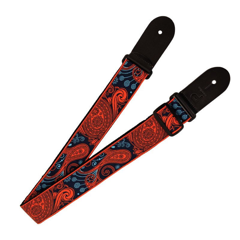 Give your instrument a bold, vintage‑inspired look with the Profile PGS-JW-6010-ORBL guitar strap. This strap features an Orange and Blue Paisley pattern, adding a stylish retro look perfect for electric, acoustic, or bass players. The intricate textile design stands out without being overwhelming, striking an ideal balance between visual flair and classic appeal.